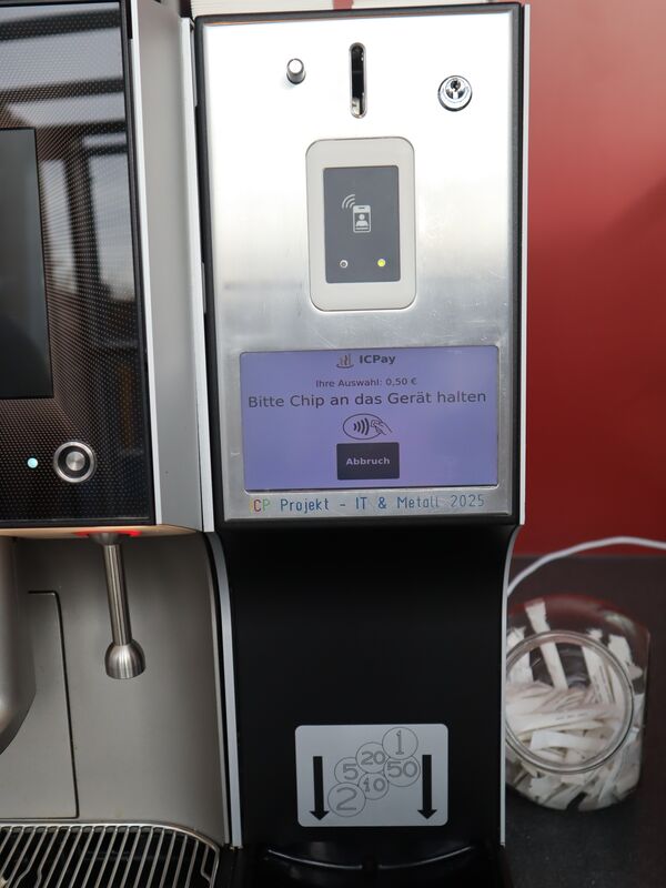 Mitarbeitende der Stiftung ICP München, wie z.B. Ausbilder D. Huber und die Auszubildenden des BBW, wie z.B. Tobias A. freuen sich gleichermaßen, dass sie nun kein Kleingeld mehr für ihren Kaffee sammeln müssen. Noah N., der maßgeblich an der technischen Umsetzung für die Schnittstelle zwischen der Kaffeemaschine und dem Zahlungsgerät mitgewirkt hat, freut sich sehr über das positive Feedback: „Bei der Umsetzung von ICPay haben wir darauf geachtet, dass die Bezahlung für die Nutzenden unkompliziert wird und das System auf vorhandener Hardware aufbaut. Mit dem von uns entwickelten ICPay System können die Nutzenden Geld z.B. per Kreditkarte auf den Mitarbeiterchip laden und verwalten. Die Bezahlung an der Kaffeemaschine oder in der Kantine findet berührungslos mit dem Chip am Lesegerät statt. Mit wenigen Mausklicks können wir nun auch die wöchentlichen Umsätze und verkauften Stückzahlen analysieren. Unser Ausbilder Herr Gebhardt stand uns bei dem komplexen Projekt immer mit Rat und Tat zur Seite. Es hat sehr viel Spaß gemacht, mit den anderen Abteilungen zusammen zu arbeiten und zeigt, wie praxisnahe Ausbildung bei uns gelebt wird.“