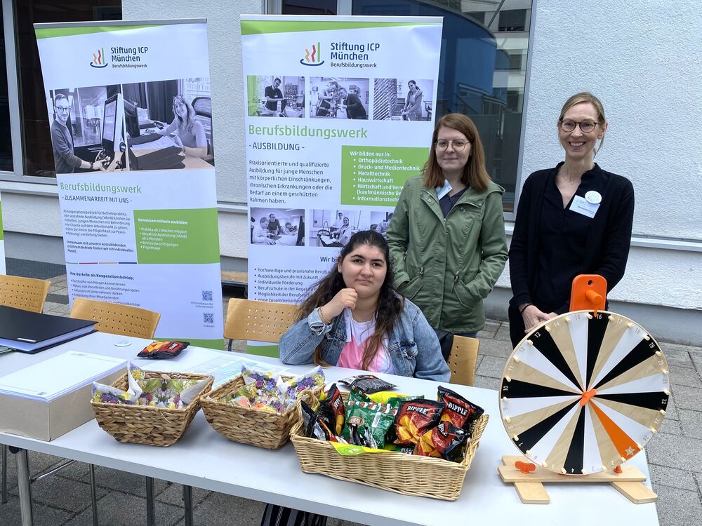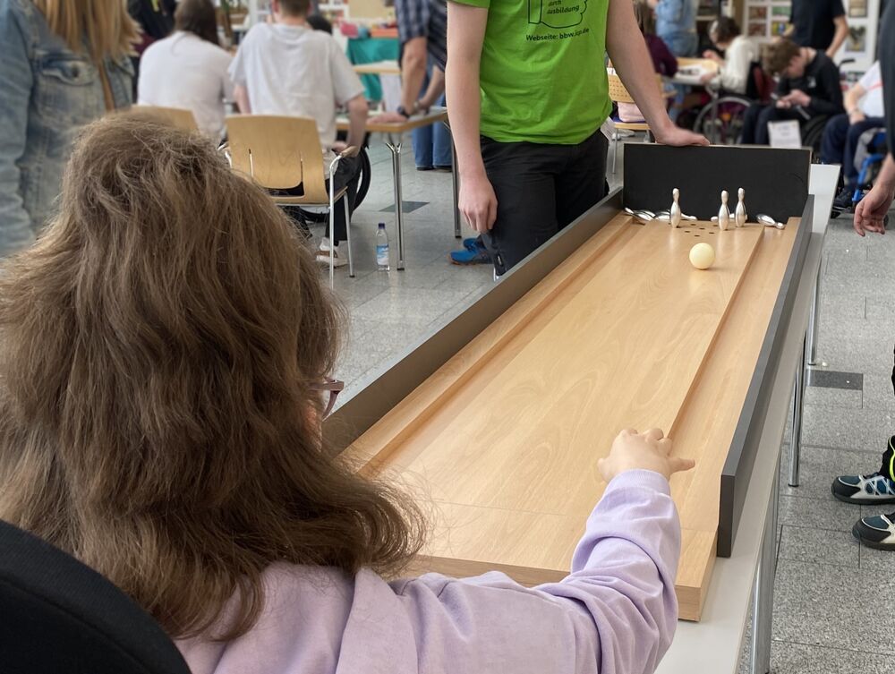 Die Besucherinnen und Besucher erwartete ein abwechslungsreiches Programm mit Live-Musik, kulinarischen Angeboten und vielfältigen Mitmachaktionen für Groß und Klein. Zudem gab es spannende Einblicke in die Arbeit dreier bedeutender sozialer Einrichtungen in München. Auch unser BBW präsentierte sich mit mehreren Ständen. Unsere Azubis und Ausbildenden stellten die verschiedenen Ausbildungsbereiche anschaulich vor und luden zum Mitmachen ein: Am Stand der Druckabteilung konnten Buttons hergestellt werden, beim Metallbereich durfte ein selbst gefertigtes Schachspiel ausprobiert und an der Bowlingbahn die eigene Zielgenauigkeit unter Beweis gestellt werden. Darüber hinaus erwartete die Gäste ein IT Hardware Quiz und ein Glücksrad mit tollen Gewinnen. Viele Interessierte nutzten auch die Gelegenheit, um sich über die Ausbildung im BBW zu informieren und direkt mit unserem Team und unseren Auszubildenden ins Gespräch zu kommen. Großen Anklang fand auch der Bücherflohmarkt, bei dem nach Schnäppchen gestöbert werden konnte. Am Nachmittag sorgte die Band „Felix and the Machines“ mit Live-Musik für Stimmung und gute Laune. Bei unseren Nachbarn war ebenfalls einiges geboten: Beim Münchenstift gab es musikalische Unterhaltung durch die Blaskapelle Haar sowie eine Hüpfburg für Kinder. Bei der Lebenshilfe Werkstatt standen neben Führungen durchs Haus auch ein Straßenzauberer, Grillen und eine weitere Band auf dem Programm.